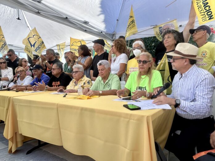 Los pensionados y los portavoces de las 11 organizaciones que representan a los más de 160,000 jubilados y jubiladas del magisterio, la judicatura y el gobierno central de Puerto Rico efectuaron una conferencia de prensa frente al Capitolio, el 12 de enero.
