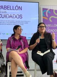 Sin embargo, también denunció la reacción conservadora, la baja inversión estatal y la tendencia a declaraciones no vinculantes. Datos compartidos durante el Foro incluyeron la crisis de los cuidados. Las mujeres dedican en promedio 38 horas semanales a tareas no remuneradas frente a 16 de los hombres, el aumento de feminicidios (3,897 en 2023), retrocesos en derechos sexuales y reproductivos, y la falta de recursos para sostener políticas de igualdad.