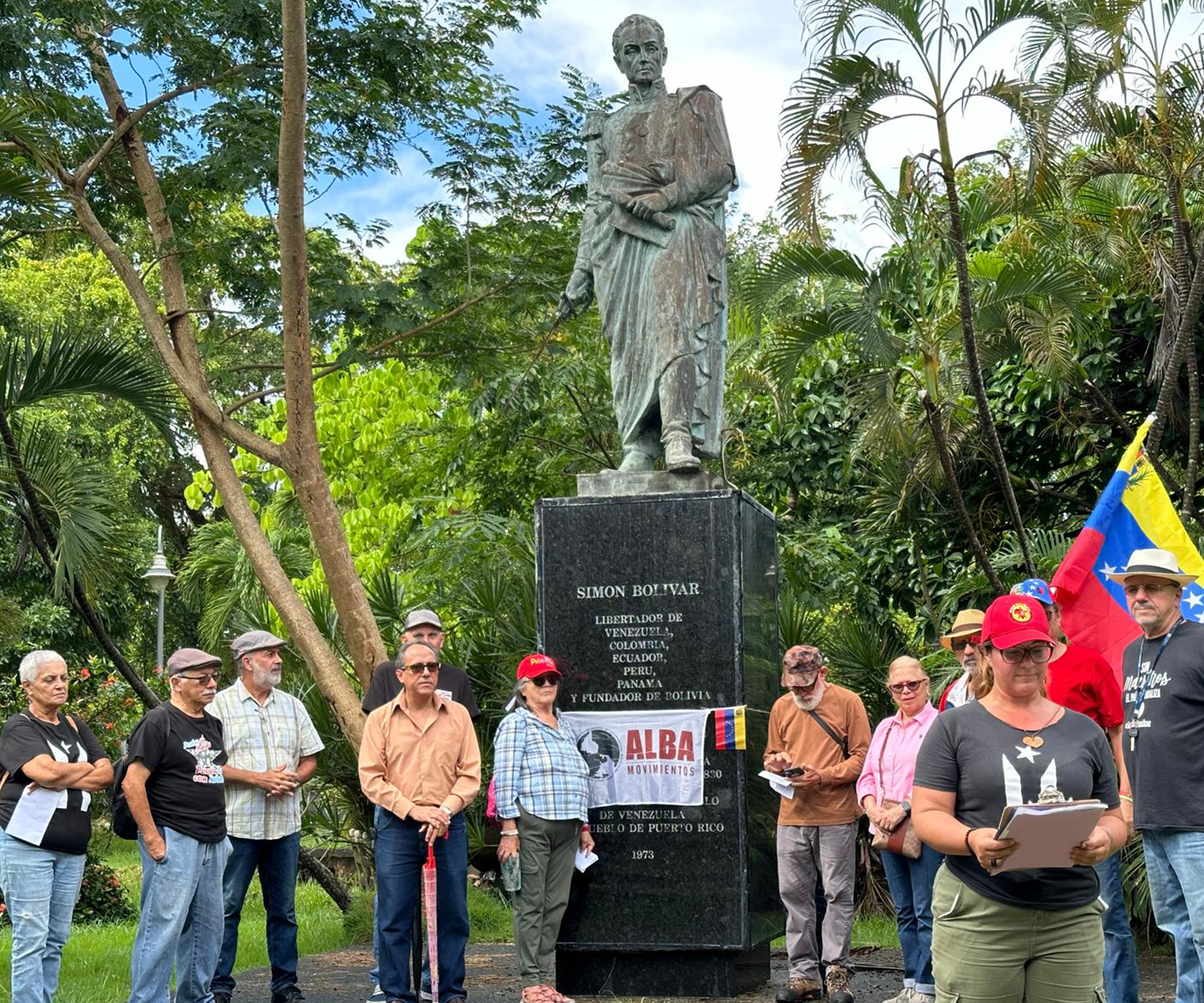 Convocados por diversas organizaciones, los manifestantes se congregaron frente a la estatua del libertador Simón Bolívar en el parque sito a la entrada de la isleta del Viejo San Juan, donde exigieron que se respete a determinación de los venezolanos de elegir nuevamente a Nicolás Maduro como su presidente.