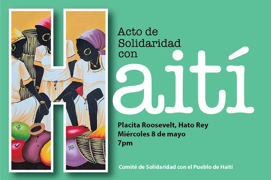 El Comité de Solidaridad con el Pueblo de Haití llevará a cabo una actividad de apoyo a la vecina isla caribeña y a su atribulada población. La manifestación tendrá lugar el miércoles 8 de mayo, de 7:00 a 10:00 de la noche, en la Placita Roosevelt de Hato Rey.