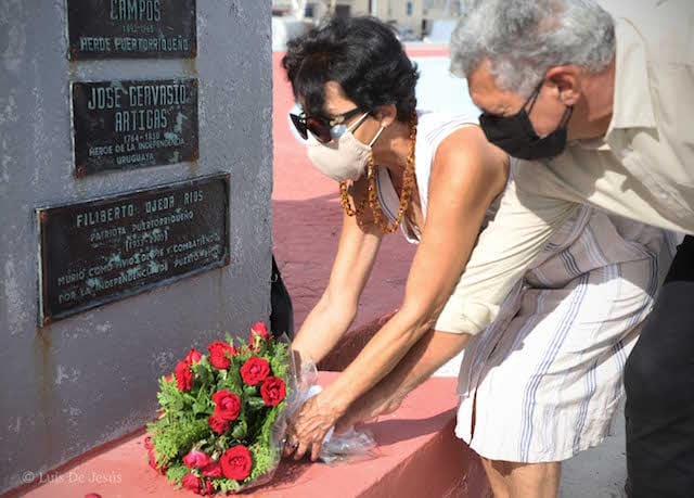 En el sencillo acto de recordación también estuvo presente Edwin González, delegado de la Misión de Puerto Rico en Cuba, quien estuvo acompañado por la independentista puertorriqueña Rosa Meneses.
