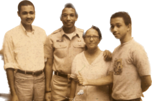 “Uno de mis hermanos que estuvo en el ejército en la guerra de Vietnam me trajo de Alemania un estuche de arte de dibujar y con el comencé, más o menos en la Escuela Intermedia, a hacer mis primeros trabajos artísticos en Oleo”.