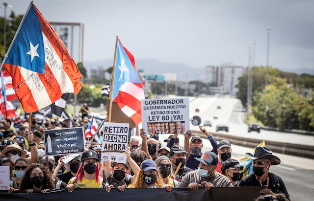 Santiago explicó que de parte del FADEP el planteamiento inicial es la no congelación de las aportaciones que tienen al Retiro los y las maestras que están actualmente en las escuelas. Es decir, que se mantenga el beneficio definido, como lo establece la ley 91, que es el 75 % del salario, vitalicio, con 30 años de servicio y con edad de jubilación de 55 años y no de 63, como quería la Junta de Control Fiscal. Aunque indicó que eso ya la Junta y el gobernador lo aceptaron, hay unos casos particulares de maestros que necesitan comprar tiempo, cerca de 10 meses, que tienen 28 años y medio de servicio, tienen la edad y necesitan completar los 30 años. Si no se retiran ahora, estas personas tendrían que trabajar hasta los 63 años y perder el 75 % de su pensión. Esto ocurriría porque el próximo15 de marzo, cuando entre en vigor el plan de ajuste de deuda (PAD), quedaría congelada la aportación al Sistema de Retiro.