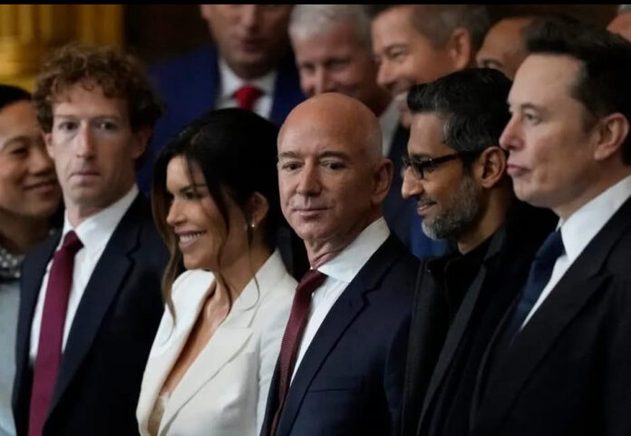 La imagen más importante del acto de juramentación de Trump: Están ahí, ocupando un lugar central en la ceremonia de entronización del presidente de Estados Unidos, los tres hombres más ricos del planeta, quienes fueron personalmente invitados por el nuevo mandatario.