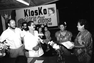 A Vitorio, en una de sus salidas esporádicas de Impresora Nacional, lo recluta nuestro cliente principal: Claridad, para la distribución del periódico en la llamada Ruta Nacional. En una madrugada de esas lo arrestan junto a Gamalier González. La persecución contra el independentismo y contra Claridad era y sigue siendo brutal. Los acusan de poseer un arma blanca, una cuchillita que usaban para cortar el cordón con que amarraban los paquetes de periódicos. Ellos se sintieron bien contentos porque el fotógrafo que asignó “El Vocero”, había sido miembro del PSP. La alegría se esfumó rápido porque esa misma mañana salió la foto en la página 2 ó 3 en el periódico, Víctor con su afro grandísimo y su cara de asusta’o. Lamentablemente esa foto la vió su papá e imagínense los regaños por estar trabajando con los “comunistas”. El Lic. Enrique “Quique” Ayoroa Santaliz los sacó absueltos. En su salida final de la imprenta, Vitorio empezó a llevarle trabajos a Julio Serrano, Impresos Taínos, compañero de Caguas a quien hay que agradecerle mucho en la lucha pro independencia. En esas últimas semanas Vitorio me hablaba del cafecito que se tomaría con Julio. Lamentablemente no se podrá dar ese encuentro.