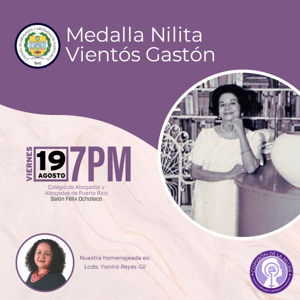 A la que puede considerarse una de sus muchas herederas, el Colegio de Abogadas y Abogados (CAPR) y su Comisión de la Mujer otorgó este año la Medalla Nilita Vientós Gastón: la profesora de Derecho, Yanira Reyes Gil.